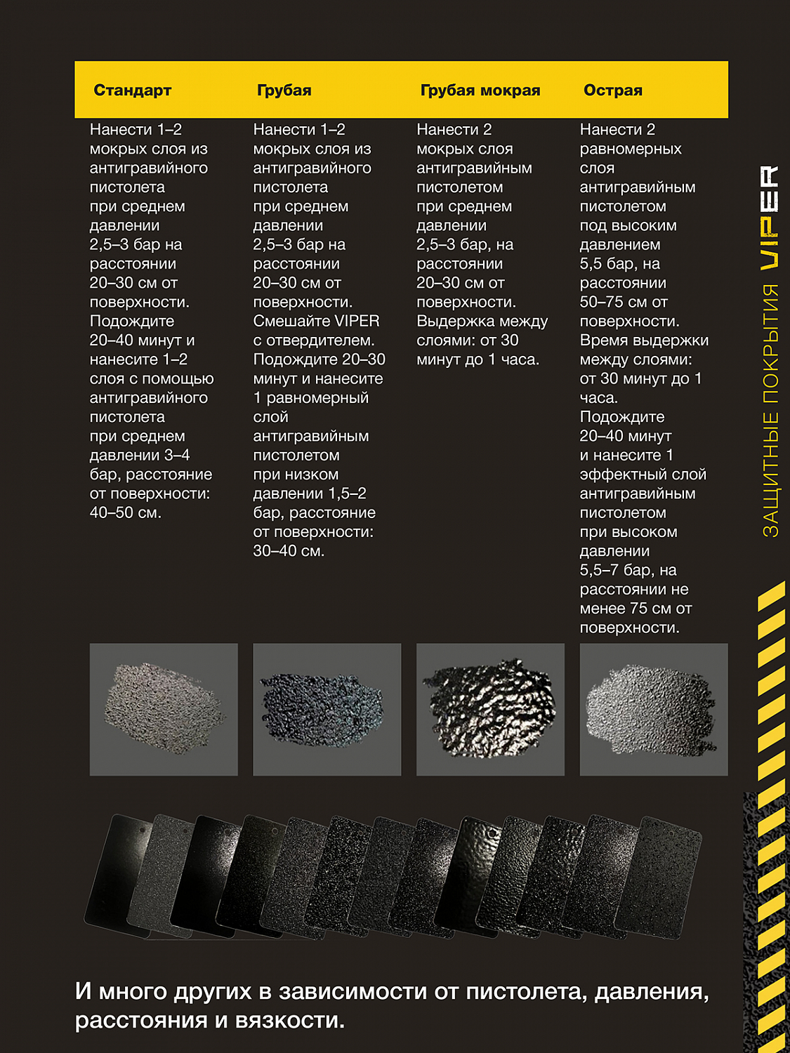 Защитное покрытие VIPER от AMAZONA PAINTS — сверхпрочное двухкомпонентное защитное покрытие премиум-класса, разработанное для максимальной защиты кузова автомобиля и любых других поверхностей, подвергающихся интенсивным нагрузкам.