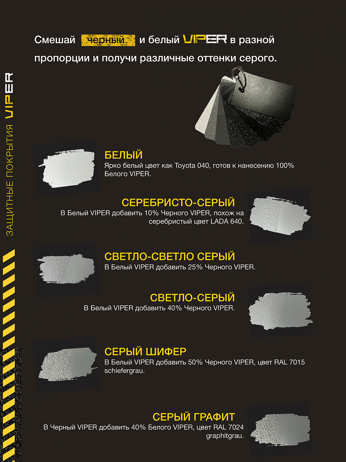 Защитное покрытие VIPER от AMAZONA PAINTS — сверхпрочное двухкомпонентное защитное покрытие премиум-класса, разработанное для максимальной защиты кузова автомобиля и любых других поверхностей, подвергающихся интенсивным нагрузкам.