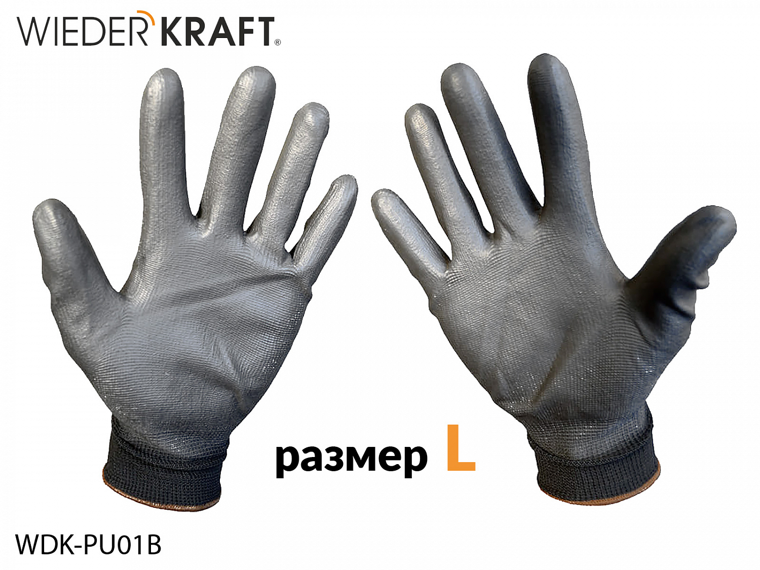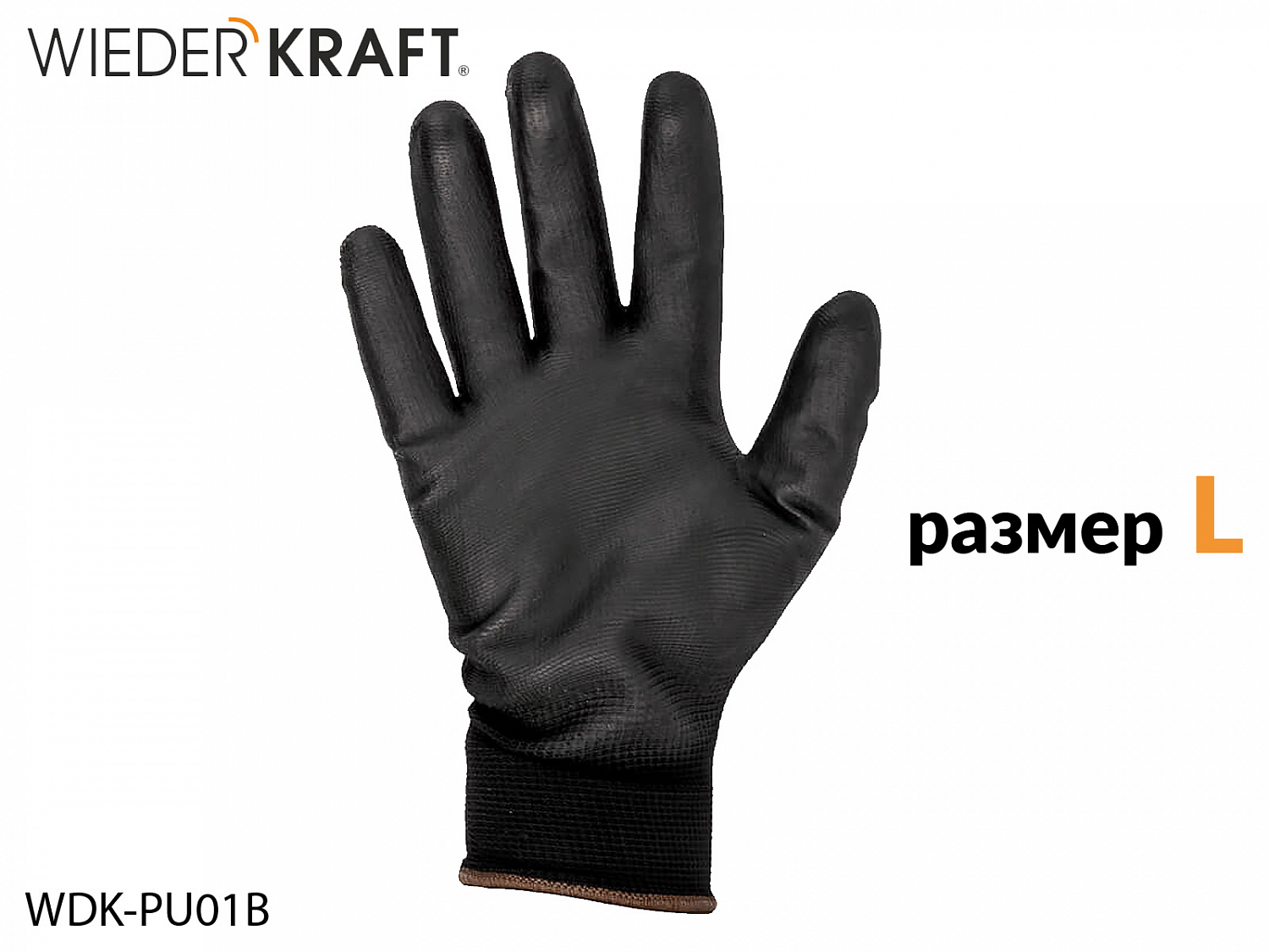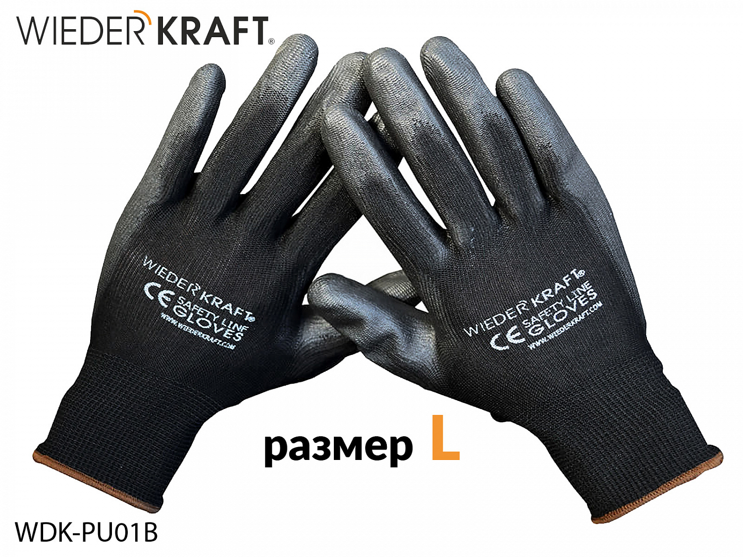 Перчатки с PU покрытием L черные для механических работ WIEDERKRAFT (пара)