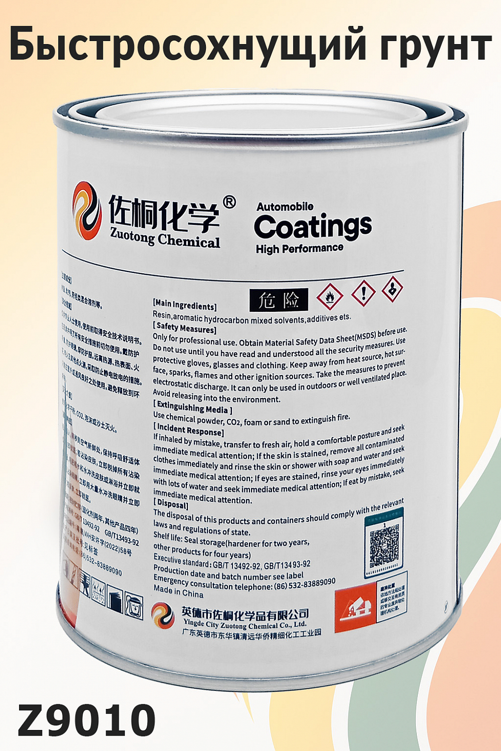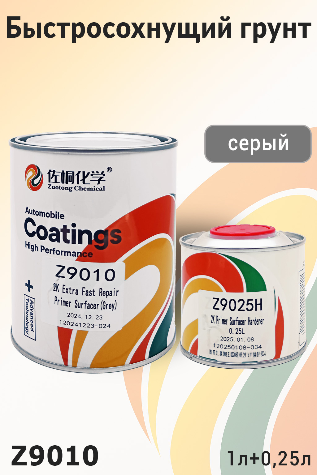 Быстросохнущий грунт ZUOTONG CHEMICAL (Z9010G) с отвердителем Z9025HT — профессиональный акриловый грунт, предназначенный для кузовного ремонта автомобилей.