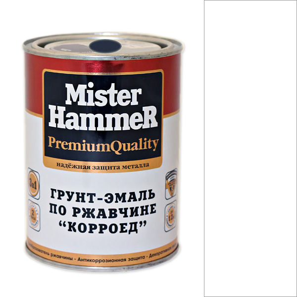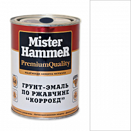 Грунт-эмаль по ржавчине белый КОРРОЕД Mister HardMax ( 0,9кг ) преобразует ржавчину. Препятствует дальнейшему возникновению подслойной коррозии. Не требует предварительного грунтования. Быстро высыхает. Образует бензомаслостойкое, декоративное, атмосферостойкое покрытие. Может использоваться, как "мокрый по мокрому" с межслойной выдержкой 5-10 минут, как самостоятельное покрытие наносится в 3 слоя (1 слой действует как преобразователь ржавчины, 2- как антикоррозионный грунт, 3 - как финишное декоративное покрытие) кистью, валиком, краскораспылителем.