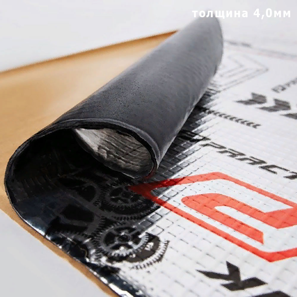 Материал вибропоглощающий PRACTIK 4,0мм 460х750мм фольгированный ШУМОФФ