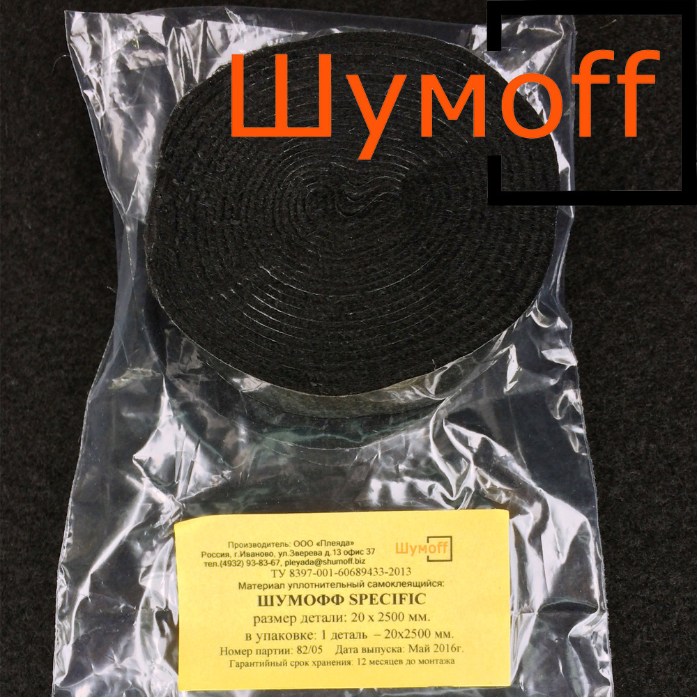 1. материал уплотнительный SPECIFIC 20х2500мм ширина 20мм "антискрип" ШУМОФФ (рулон, 2,5м)1
